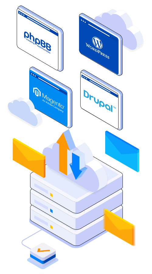 简单方便地安装合适的应用程序及常用软件,包括 WordPress、WooCommerce、Magento、Drupal 及 phpBB 等。