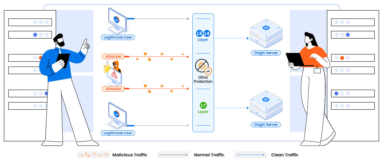 Seamless Traffic DeliveryAfter malicious traffic is identified and removed, the clean, legitimate traffic is seamlessly forwarded to your server. This process happens in the background, ensuring minimal latency and no noticeable interruptions to your server’s operation. Your server continues to operate optimally, providing a consistent and reliable experience for your users.